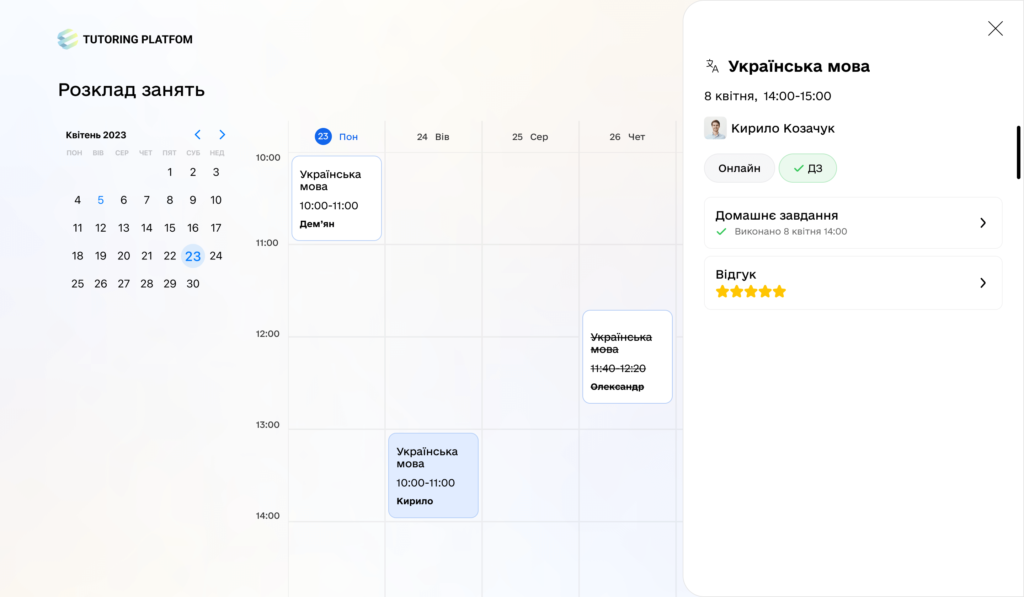 Choose free slots for classes without prior communication. The calendar in the application will remind you about the scheduled lessons.